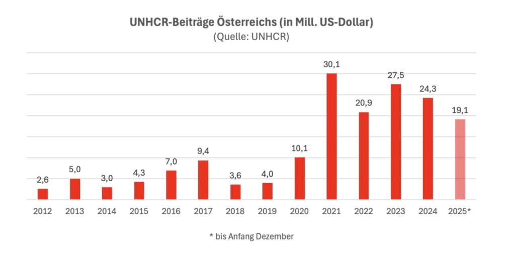 ZAHLEN ZUM TAG. Gegenüber den 2010er Jahren hat Österreich seine Zahlungen an das UN-Flüchtlingshochkommissariat vervielfacht. Diesem setzen jedoch massive US-Ausfälle zu.