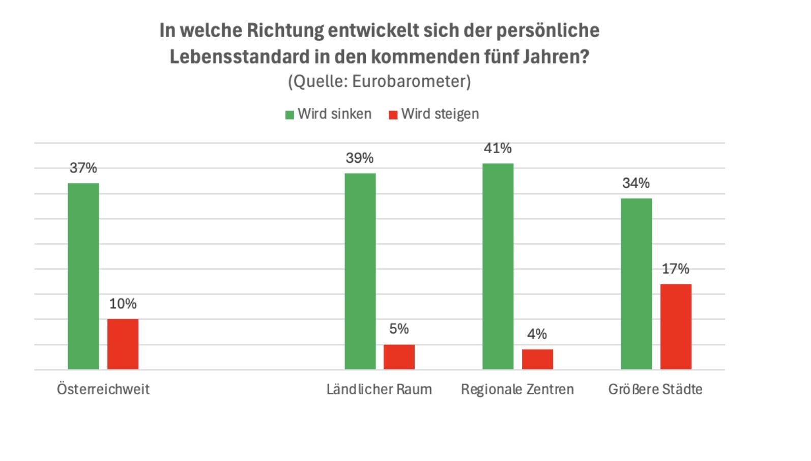 BERICHT. In ländlichen Regionen sehen die Menschen für sich selbst und für Österreich viel eher schwarz als in Städten. Das sagt was.