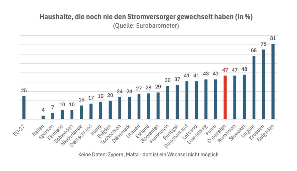 ZAHLEN ZUM TAG. In Österreich haben vergleichsweise viele Haushalte noch nie den Anbieter gewechselt. Das ist ein Problem.