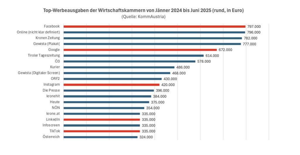 BERICHT. Die Wirtschaftskammer ist ein Werberiese. Vor allem auf Facebook und Co., also nicht-österreichischen Medien.