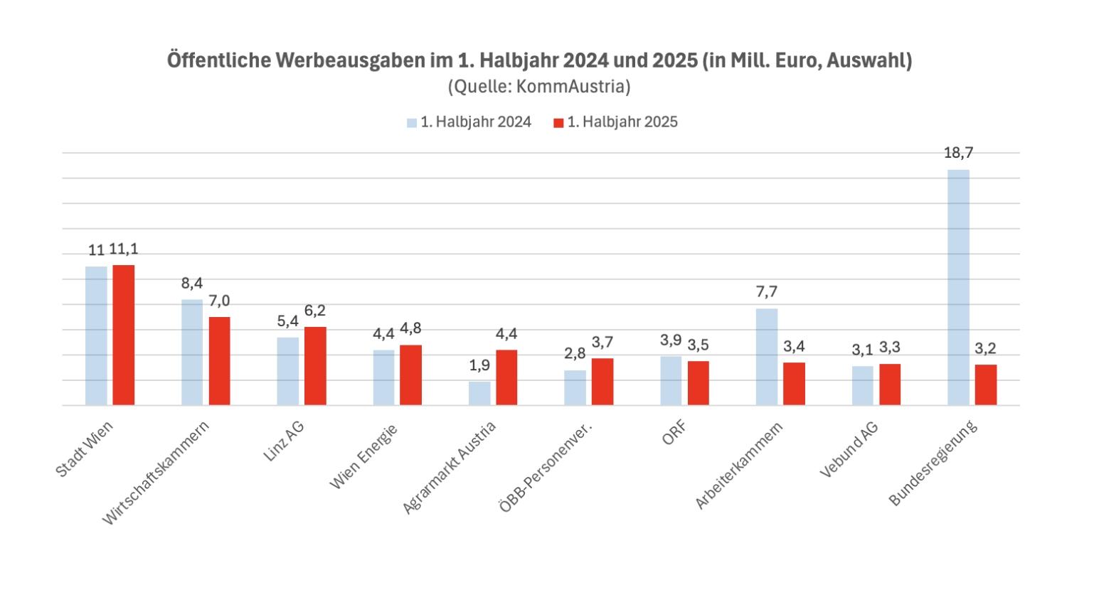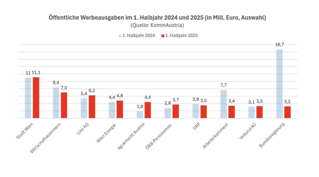 Die Kommunikationsbehörde „KommAustria“ hat gerade Daten zu öffentlicher Werbung im ersten Halbjahr 2025 veröffentlicht. Diese Werbung ist seit dem vergangenen Jahr ohne Ausnahme der Behörde zu melden. Und zwar von allen Rechtsträgern, die der Rechnungshofkontrolle unterliegen. Also von Bund, Ländern und Gemeinden, aber auch Beteiligungsunternehmen, Kammern sowie ORF beispielsweise.