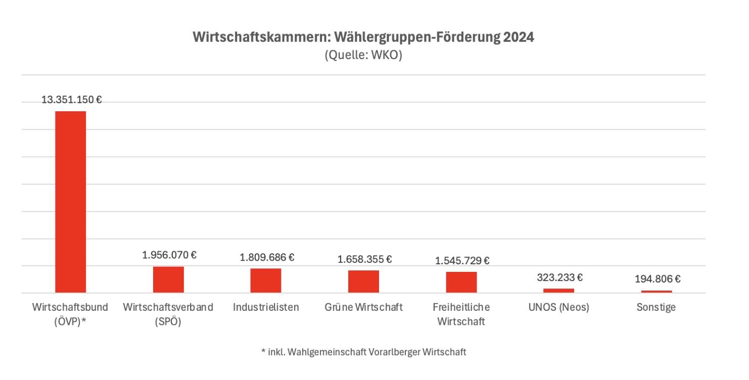 Im Land mit der sehr wahrscheinlich höchsten Parteienförderung gemessen an der Bevölkerung weltweit gibt es extra auch noch Förderungen in zweistelliger Millionenhöhe für parteinahe Kammerlisten: Im vergangenen Jahr allein handelte es sich auf Bundesebene und in den Ländern um summa summarum 20,8 Millionen Euro.